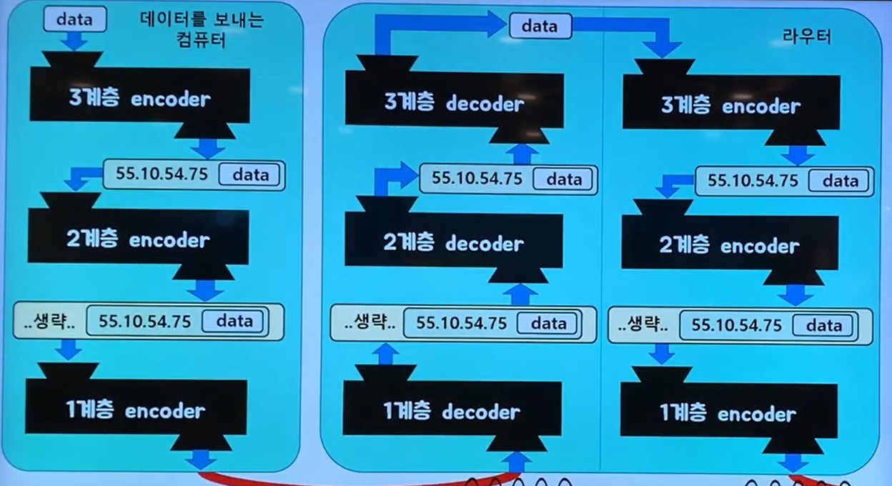 다음과 같이 각 계층을 돌면서 encoding되고, 다시 decoding 되면서 데이터가 전송된다는 것을 알 수 있다.