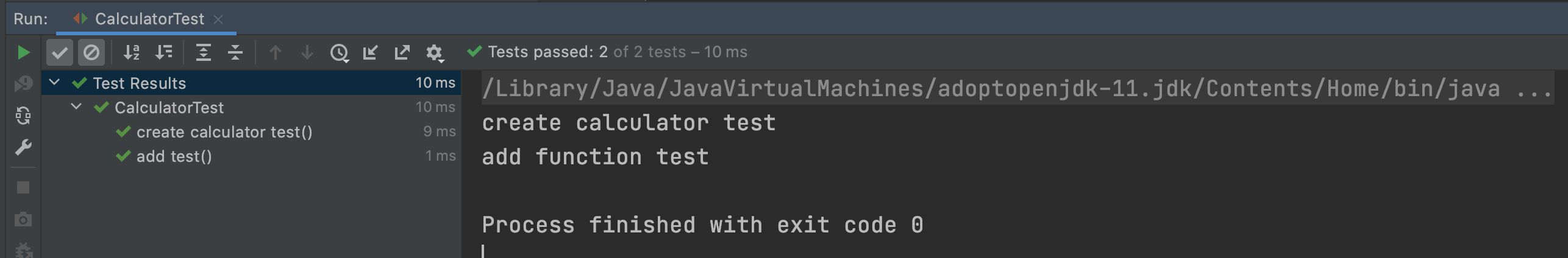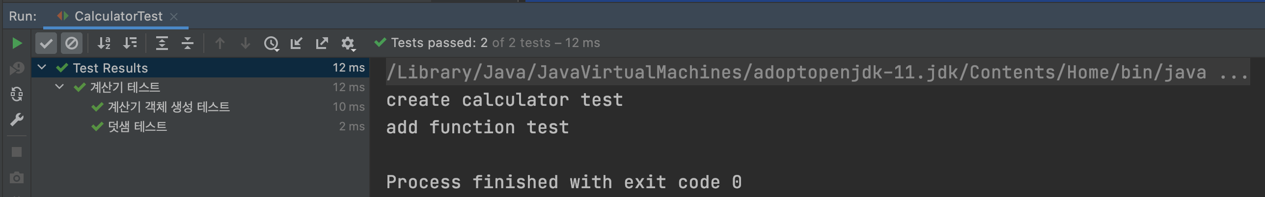 테스트 이름이 @DisplayName에서 지정한대로 출력됨을 확인할 수 있다.