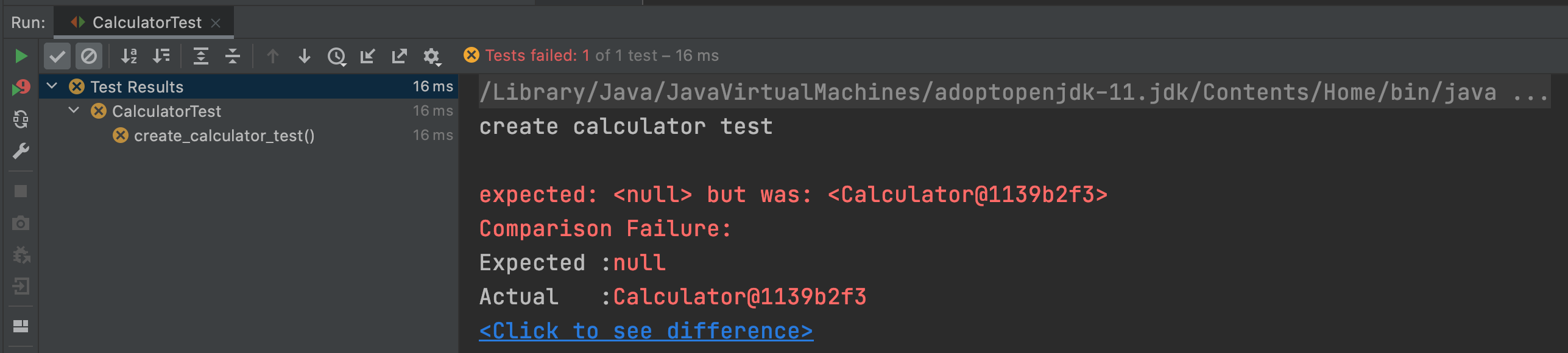 assertNotNull(calculator, () -> "Calculator 객체는 null이면 안된다.");